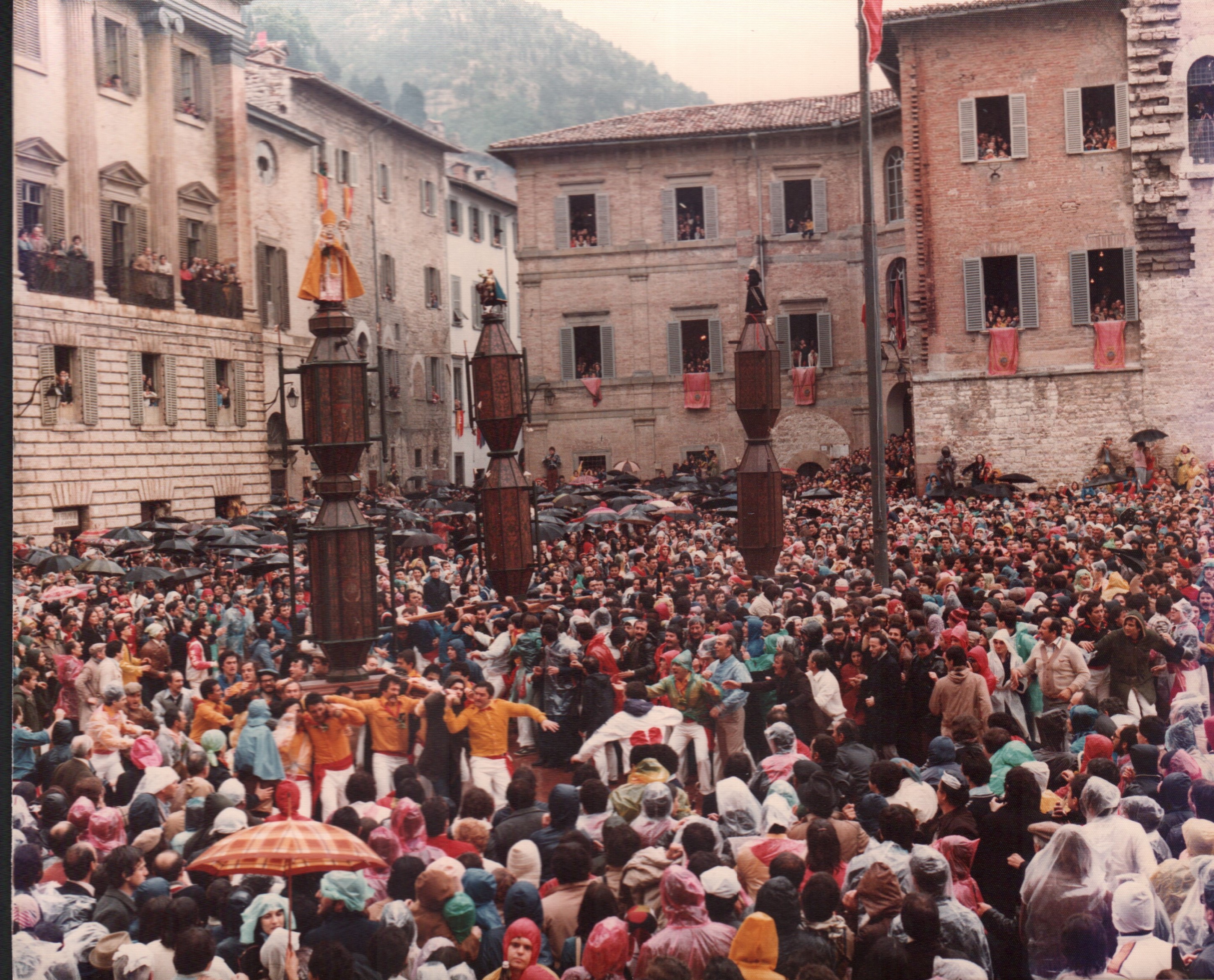 [Festa dei Ceri 1977 : birate dei tre Ceri in Piazza Grande dopo l’alzata, 2